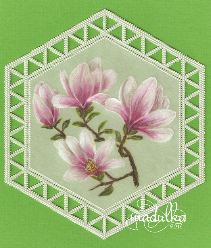 Znowu na bazie ,,starej” rameczki, tym razem magnolia malowana