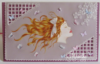 Karteczka oczywiście według projektu Lindy Williams malowana kredkami polychromos (Faber Castel) z elementami 3D - motylki.