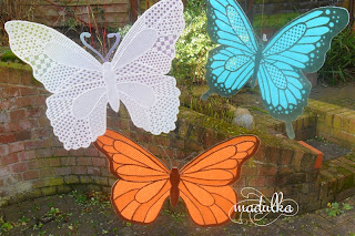 The second butterfly is made of orange parchment 200g - background and black parchment 150g - on top.